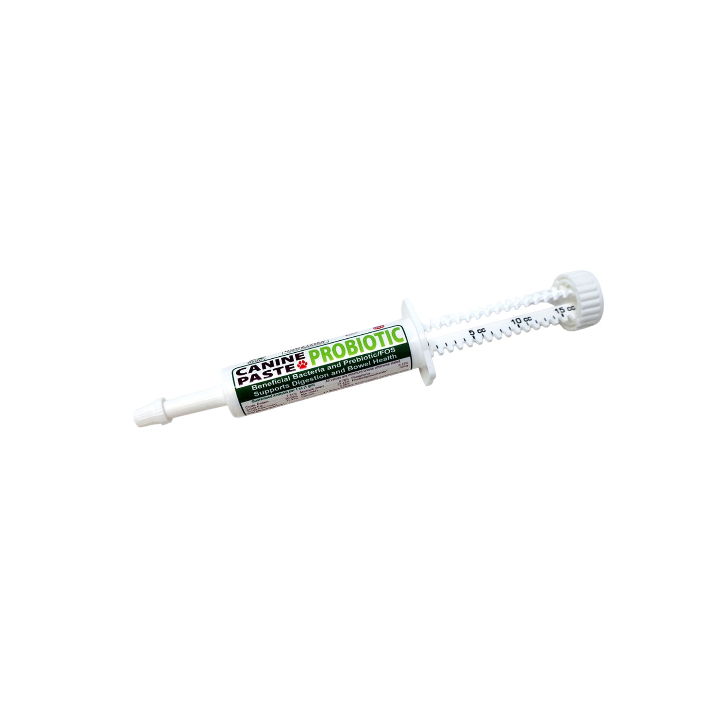 Dogzymes Canine Probiotic Paste beneficial bacteria-enzyme 2.3 Billion CFU/gm saccharomyces boulardii organic dried honey powder. Dogzymes Canine Probiotic Paste packs a tasty punch to support your dog’s gut health. Feed this product as part of a daily wellness regimen. One of our most popular products! No refrigeration needed! Up to 2 year shelf life! An oral probiotic paste providing digestive bacteria and enzymes for use by mouth rather than adding to food.