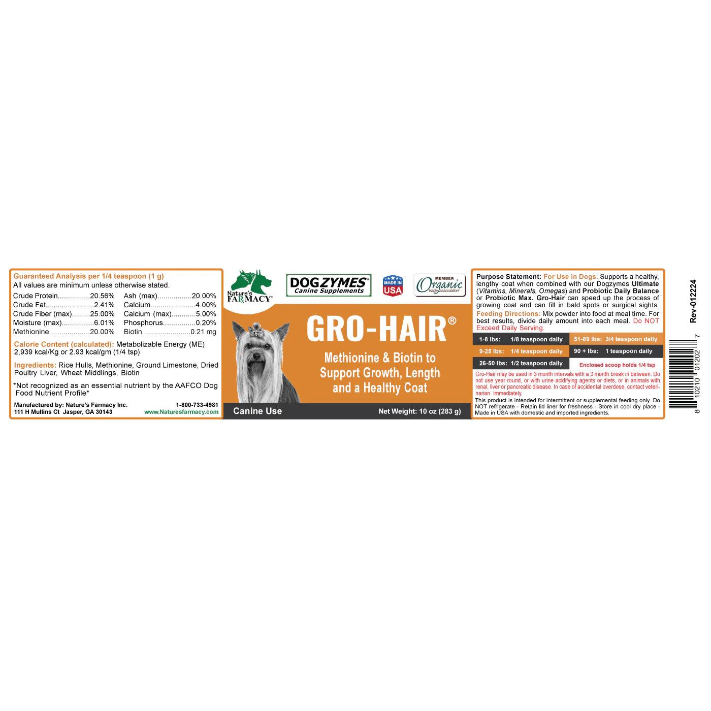 Purpose Statement: Supports a healthy, lengthy coat when combined with our Dogzymes Ultimate and one of our Probiotics (Digestive Enhancer or Probiotic Max).